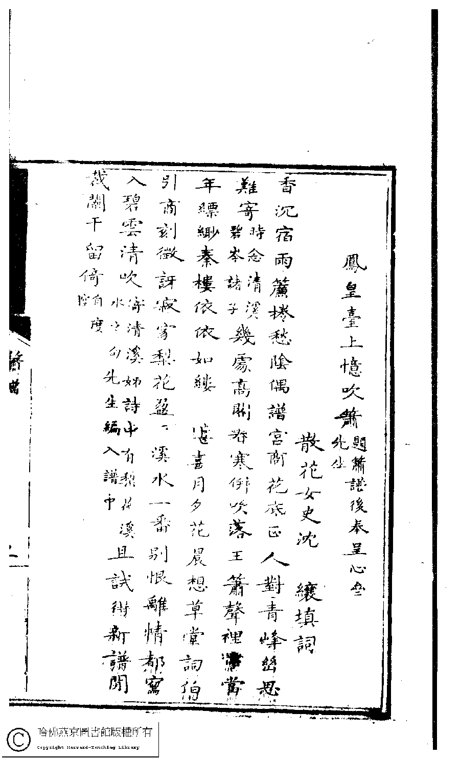 詩詞 [鳳皇臺上憶吹簫 ﹕題蕭譜後奉呈心齋先生]