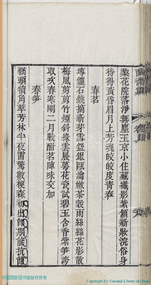 | (PRINT FRIENDLY VERSION) 留香集:二卷(清張倩撰)。道光十二年(1832)刻本 ![]() 頁碼 : 上卷-絮影山房詩稿.8b | 点 击 放 大 | 返回 |