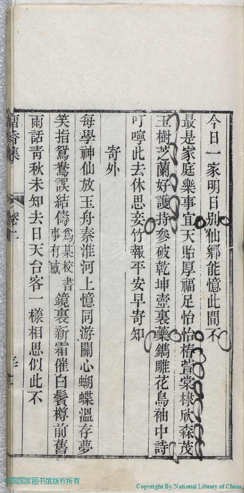 | (PRINT FRIENDLY VERSION) 留香集:二卷(清張倩撰)。道光十二年(1832)刻本 ![]() 頁碼 : 上卷-絮影山房詩稿.10a | 点 击 放 大 | 留香集:二卷(清張倩撰)。道光十二年(1832)刻本![]() 頁碼 : 上卷-絮影山房詩稿.9b | 点 击 放 大 | 返回 |