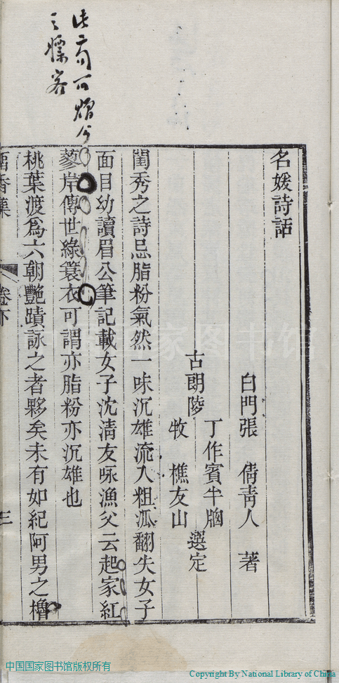 | 原書: 留香集:二卷(清張倩撰) |