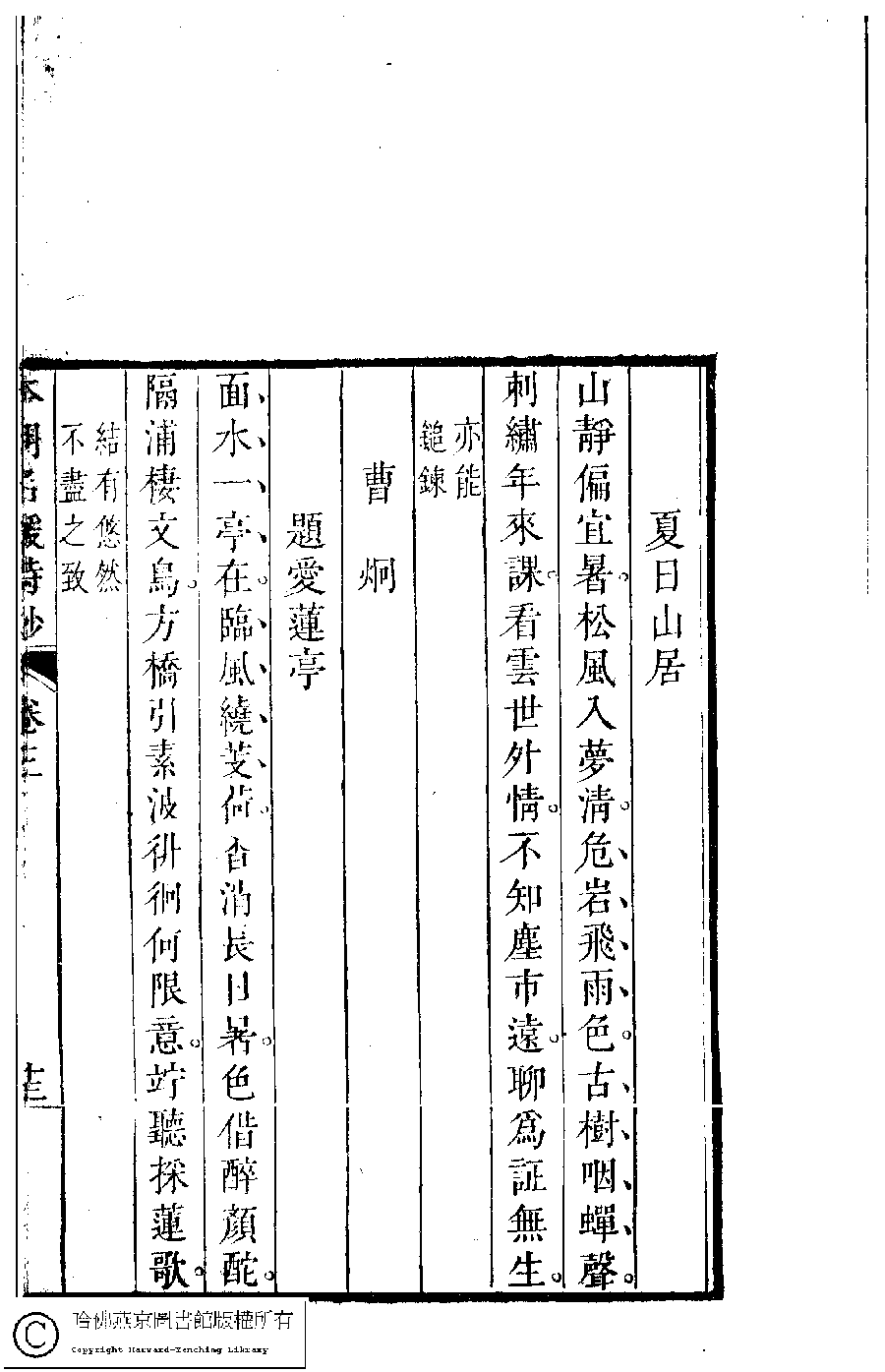| (PRINT FRIENDLY VERSION) 本朝名媛詩鈔﹕六卷(清胡孝思輯)。清康熙五十五年(1716)凌雲閣刻本 ![]() 頁碼 : 3.13a | 点 击 放 大 | 返回 |