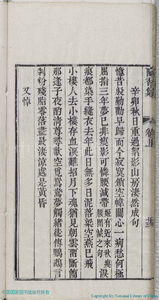 | (PRINT FRIENDLY VERSION) 留香集:二卷(清張倩撰)。道光十二年(1832)刻本 ![]() 頁碼 : 上卷-附刊悼亡題集詩.1b | 点 击 放 大 | 返回 |