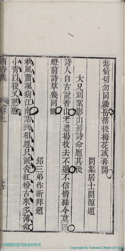 | (PRINT FRIENDLY VERSION) 留香集:二卷(清張倩撰)。道光十二年(1832)刻本 ![]() 頁碼 : 上卷-附刊悼亡題集詩.4a | 点 击 放 大 | 返回 |