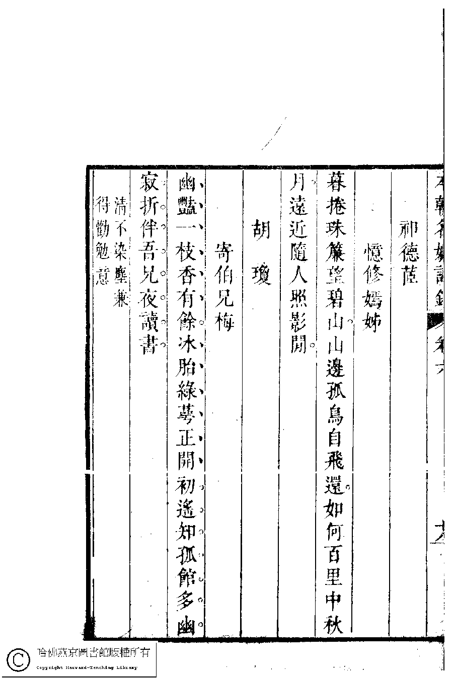 | 原書: 本朝名媛詩鈔﹕六卷(清胡孝思輯) |
