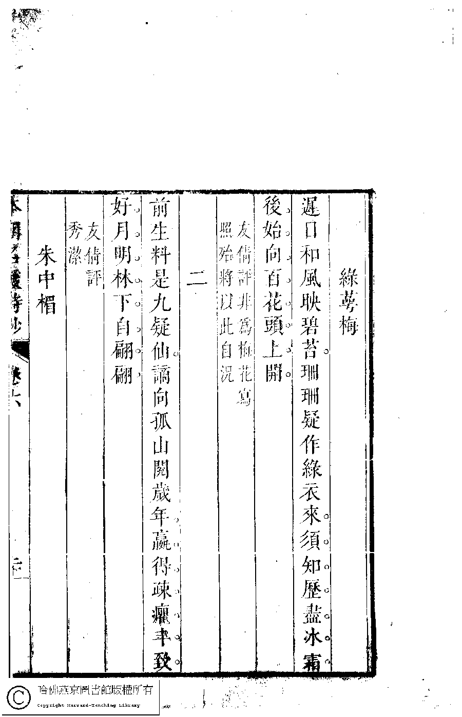 | (PRINT FRIENDLY VERSION) 本朝名媛詩鈔﹕六卷(清胡孝思輯)。清康熙五十五年(1716)凌雲閣刻本 ![]() 頁碼 : 6.20a | 点 击 放 大 | 返回 |