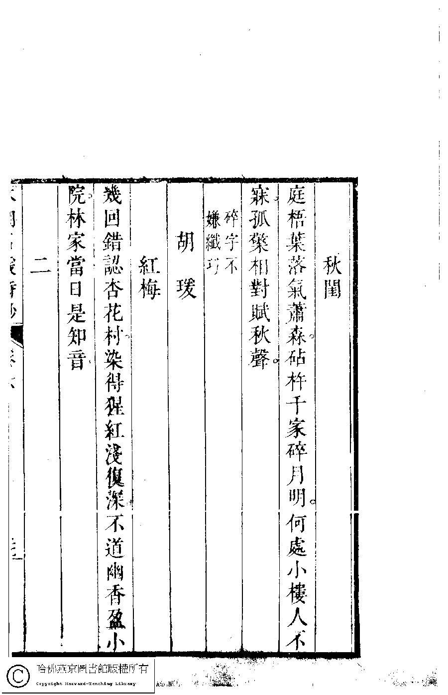 | (PRINT FRIENDLY VERSION) 本朝名媛詩鈔﹕六卷(清胡孝思輯)。清康熙五十五年(1716)凌雲閣刻本 ![]() 頁碼 : 6.21b | 点 击 放 大 | 本朝名媛詩鈔﹕六卷(清胡孝思輯)。清康熙五十五年(1716)凌雲閣刻本![]() 頁碼 : 6.21a | 点 击 放 大 | 返回 |