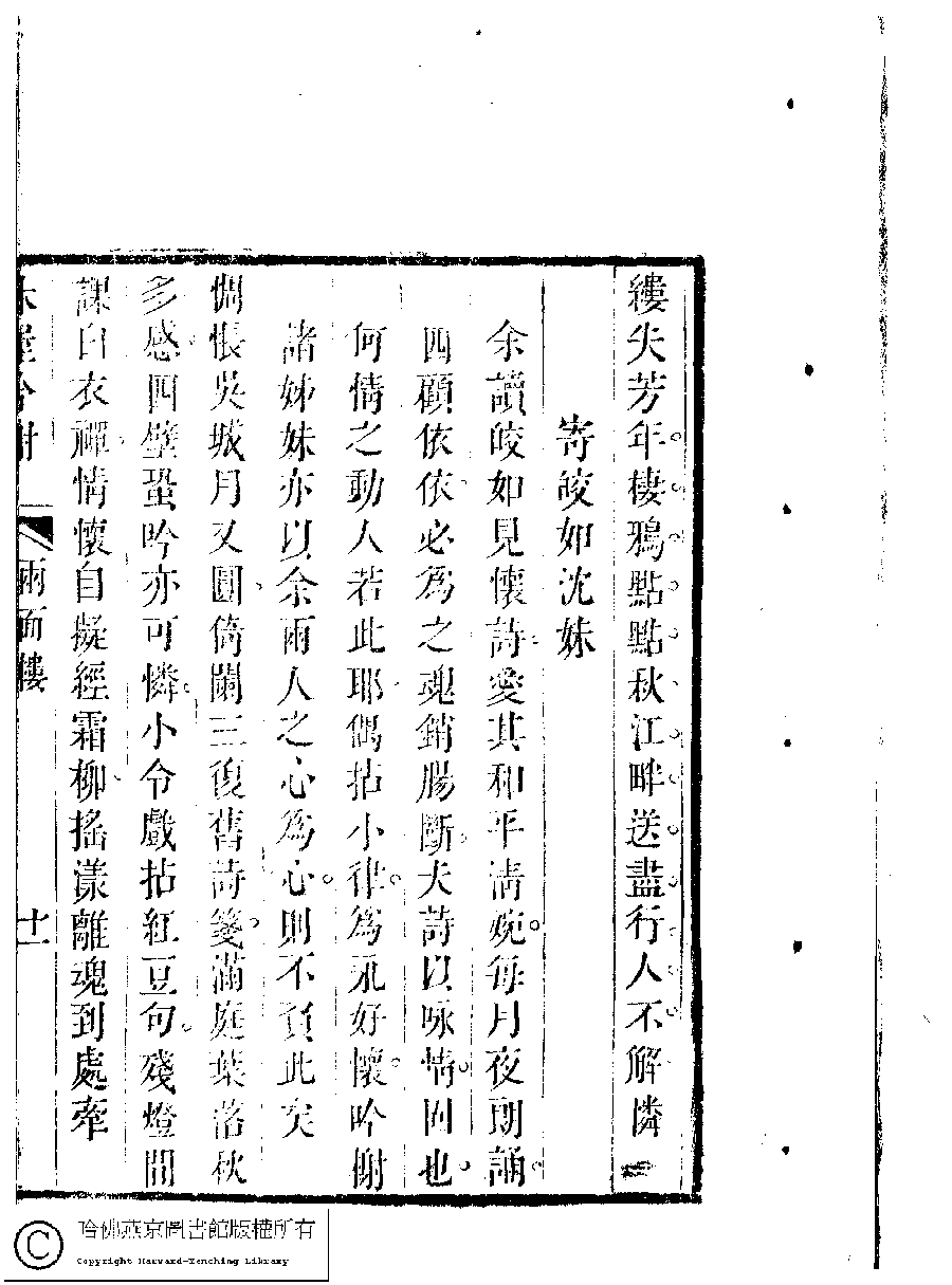 | 原書: 吳中女士詩鈔(清任兆麟輯,張滋蘭選): 兩面樓詩稿﹕一卷 |