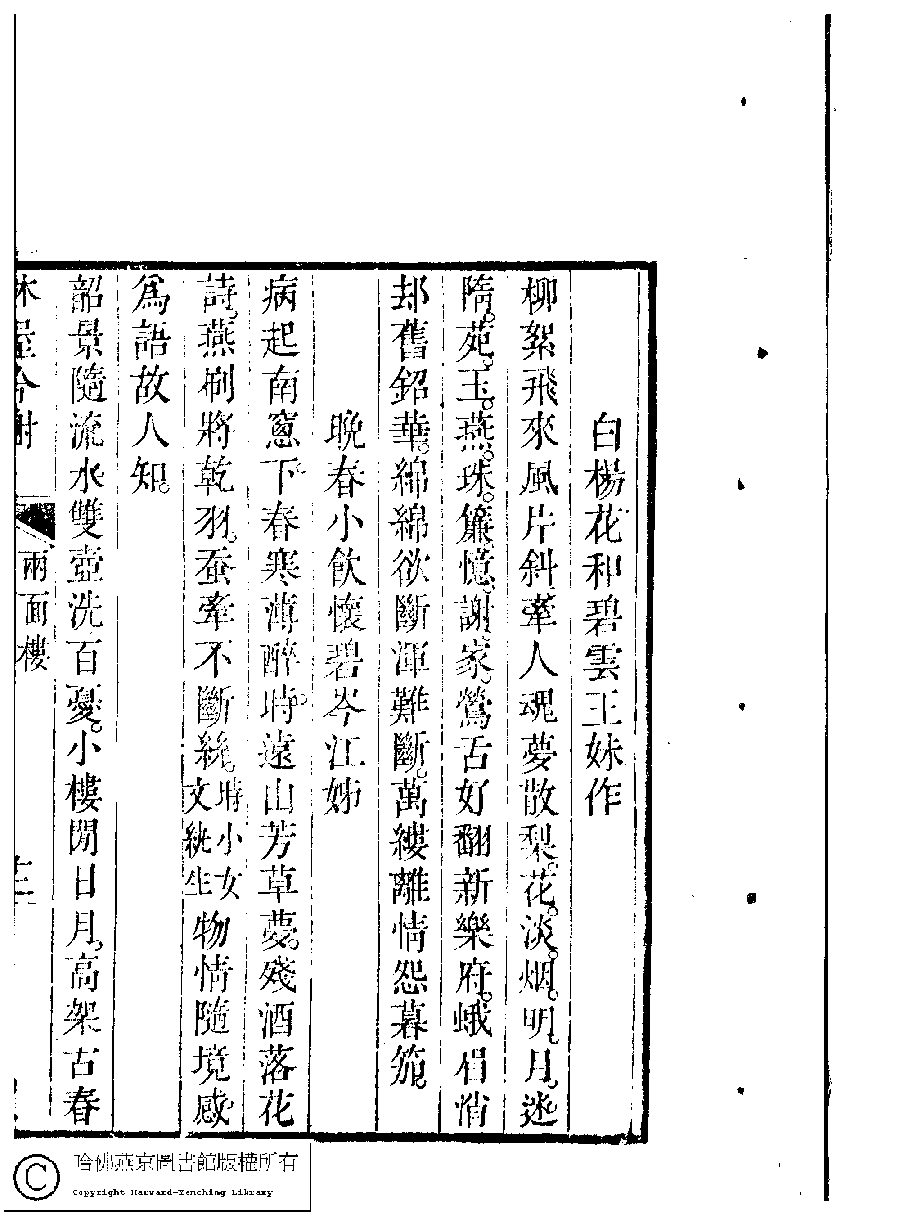| 原書: 吳中女士詩鈔(清任兆麟輯,張滋蘭選): 兩面樓詩稿﹕一卷 |