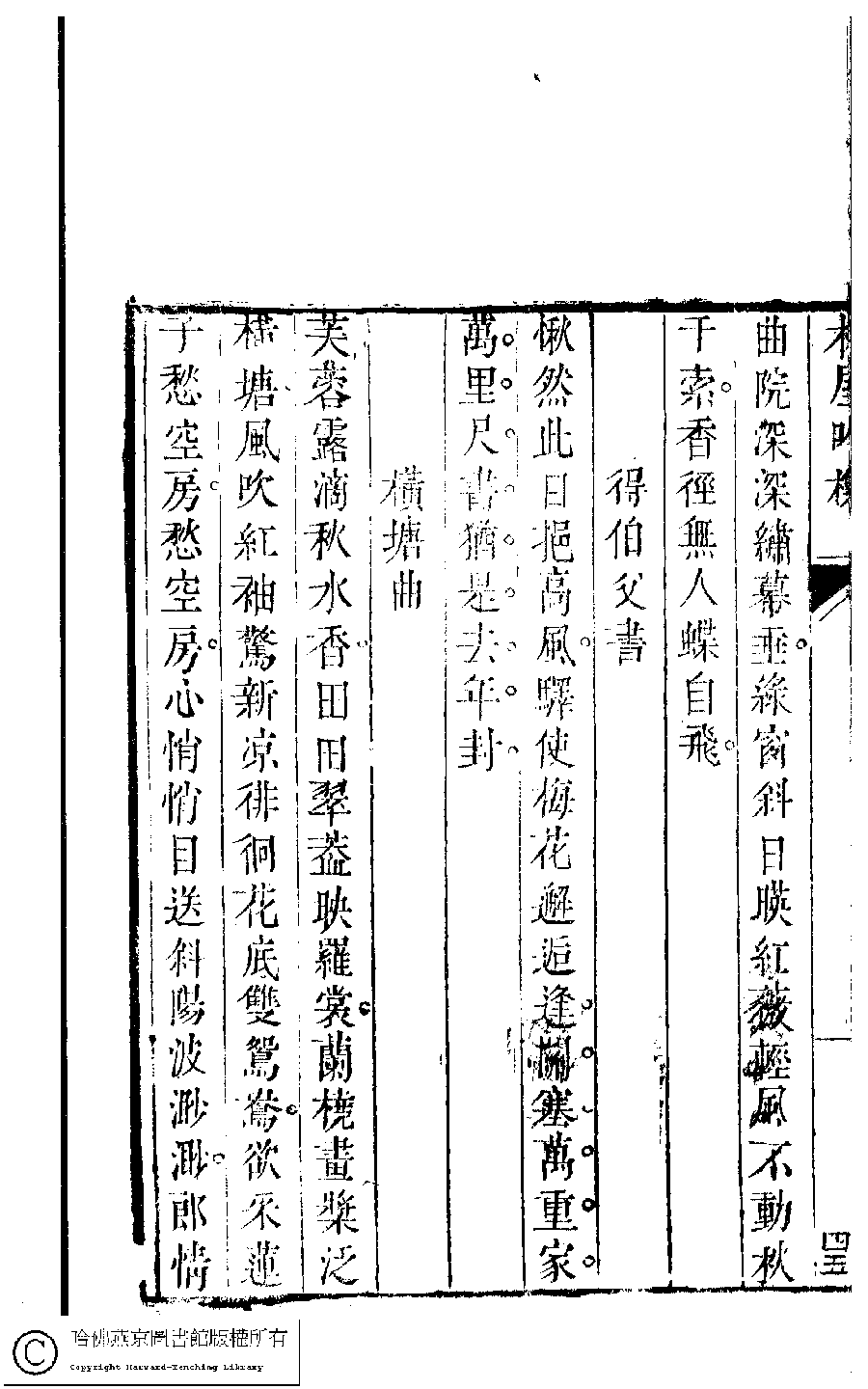 | (PRINT FRIENDLY VERSION) 吳中女士詩鈔(清任兆麟輯,張滋蘭選) : 采香樓詩集﹕一卷。清乾隆五十四年(1789)刻本 ![]() 頁碼 : 采香樓.5b | 点 击 放 大 | 吳中女士詩鈔(清任兆麟輯,張滋蘭選) : 采香樓詩集﹕一卷。清乾隆五十四年(1789)刻本![]() 頁碼 : 采香樓.5a | 点 击 放 大 | 返回 |