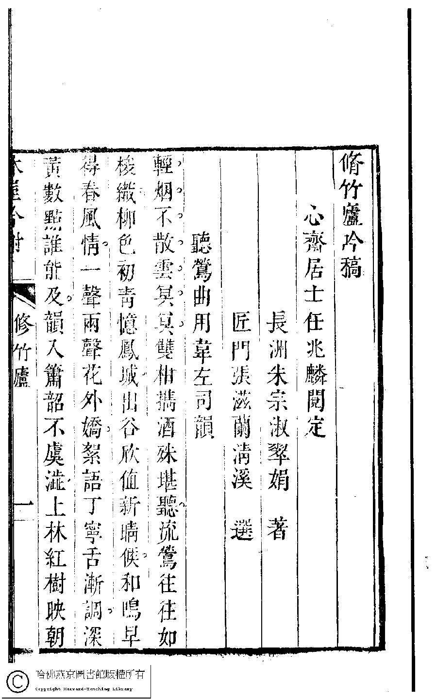 | 原書: 吳中女士詩鈔(清任兆麟輯,張滋蘭選): 修竹廬吟稿﹕一卷 |