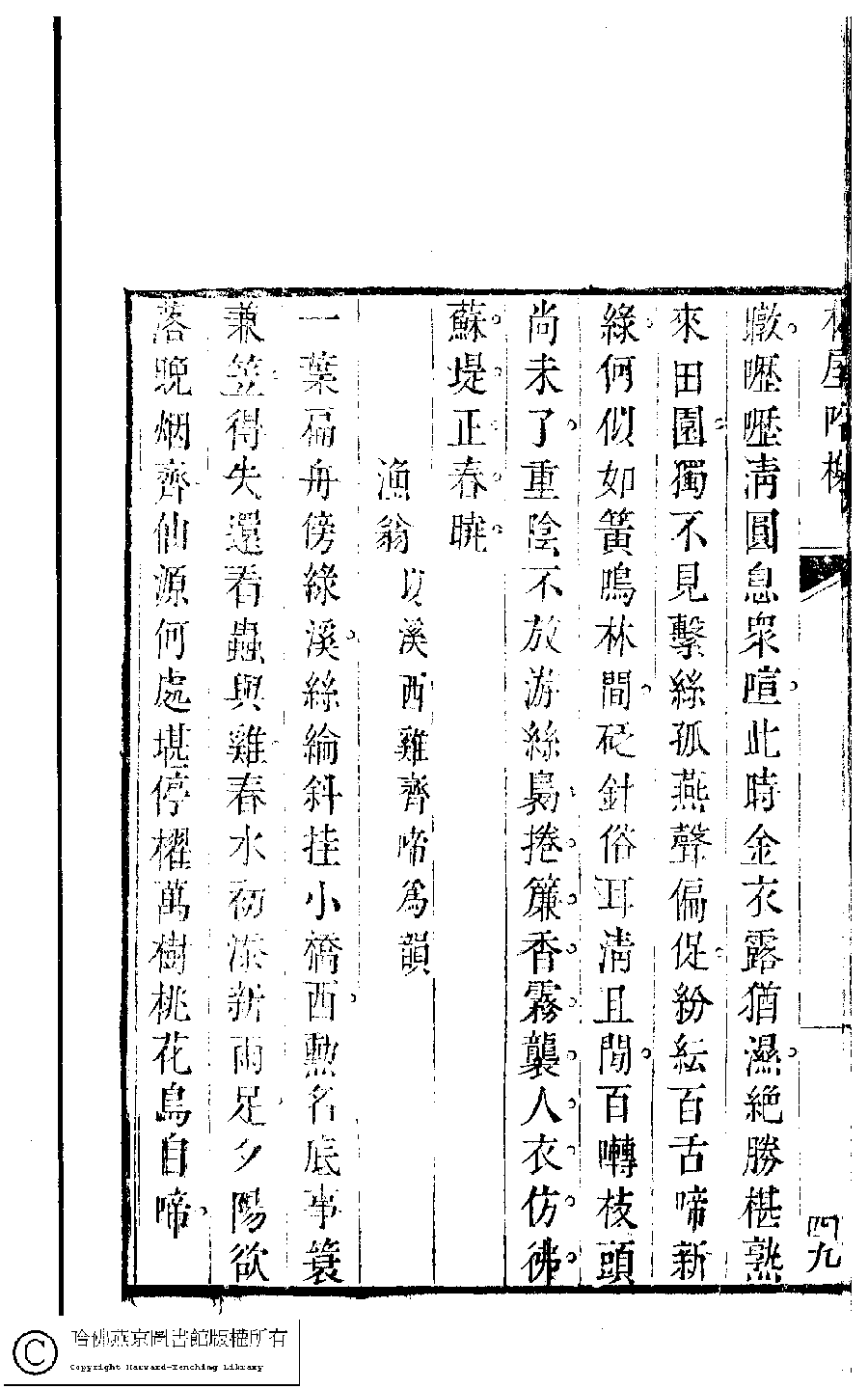 | (PRINT FRIENDLY VERSION) 吳中女士詩鈔(清任兆麟輯,張滋蘭選) : 修竹廬吟稿﹕一卷。清乾隆五十四年(1789)刻本 ![]() 頁碼 : 修竹廬.1b | 点 击 放 大 | 吳中女士詩鈔(清任兆麟輯,張滋蘭選) : 修竹廬吟稿﹕一卷。清乾隆五十四年(1789)刻本![]() 頁碼 : 修竹廬.1a | 点 击 放 大 | 返回 |
