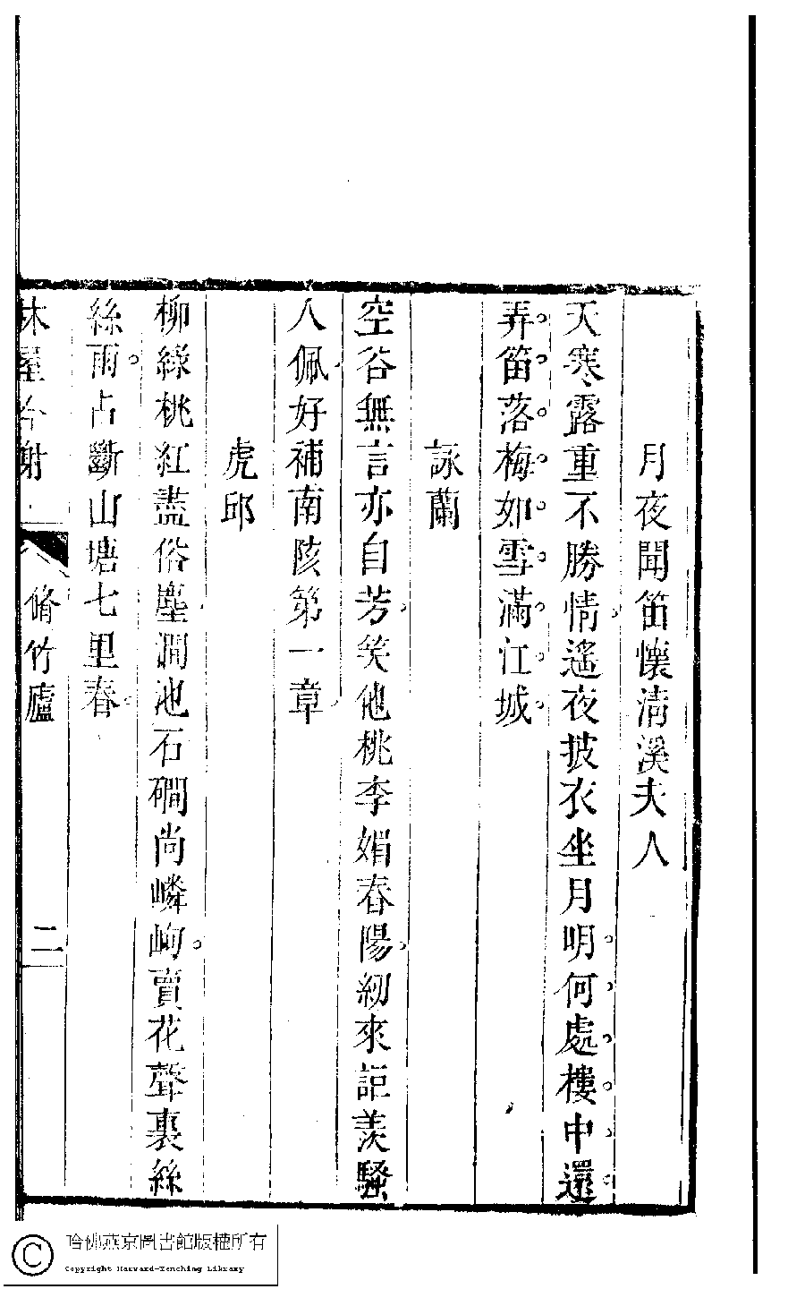 | 原書: 吳中女士詩鈔(清任兆麟輯,張滋蘭選): 修竹廬吟稿﹕一卷 |