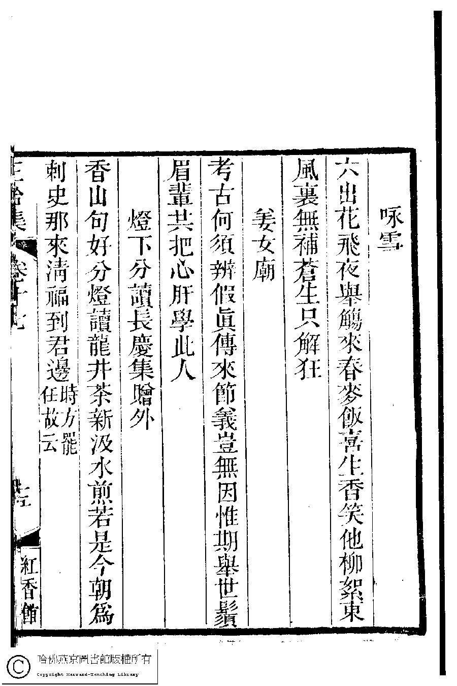 | 原書: 國朝閨秀正始集﹕二十卷﹐附錄﹕一卷﹐補遺﹕一卷﹐又附題詞﹕一卷(清惲珠輯) |