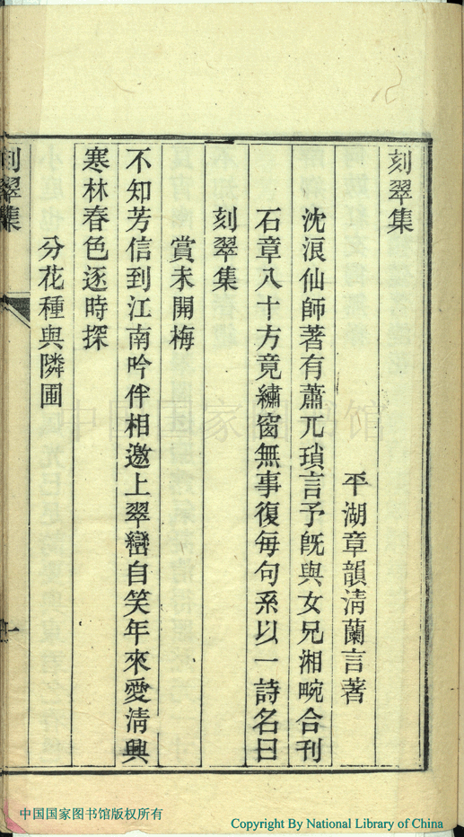 | 原書: 刻翠集:一卷(清章韻清撰) |