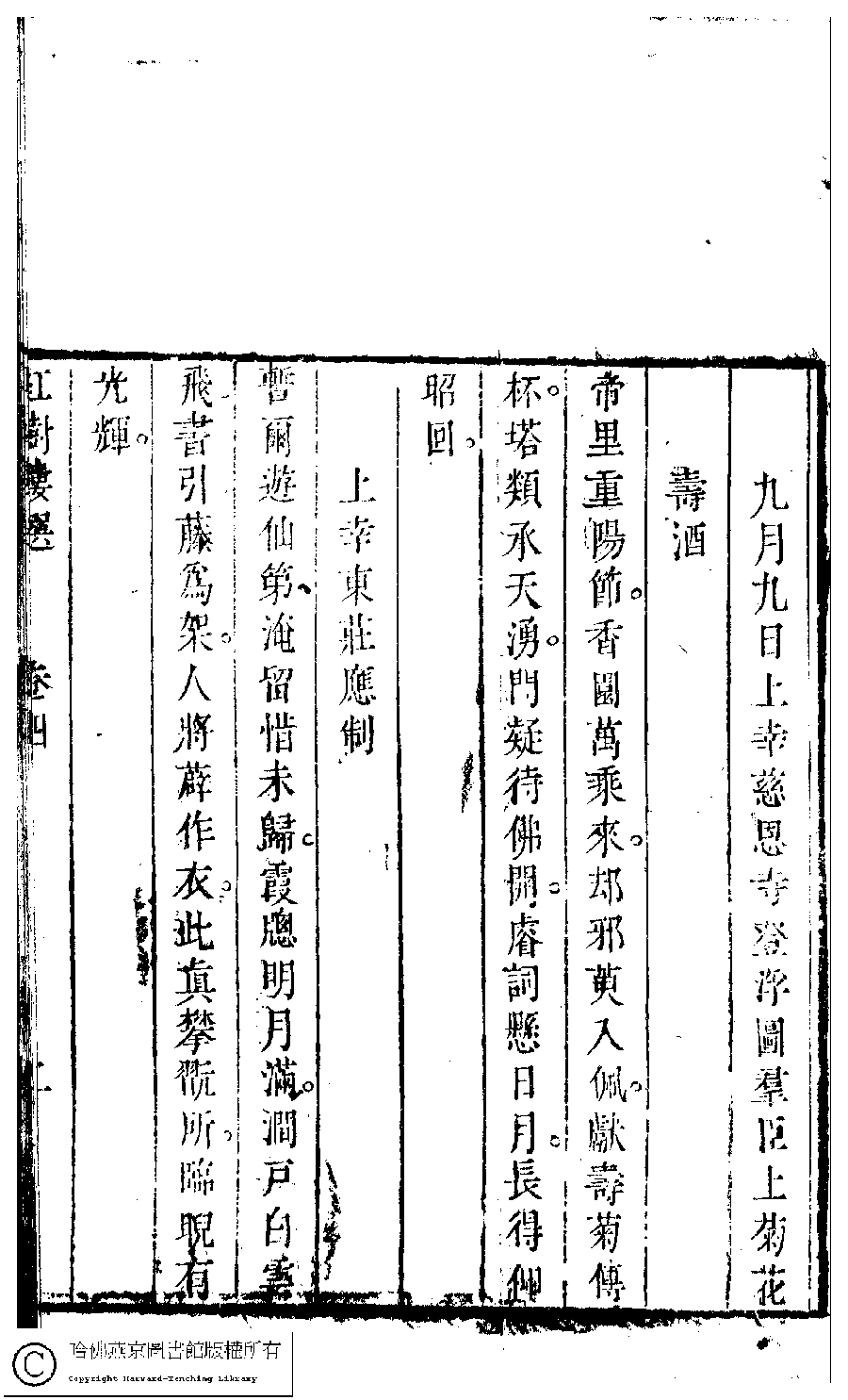 詩詞 [九月九日上幸慈恩寺登浮圖羣臣上菊花壽酒]