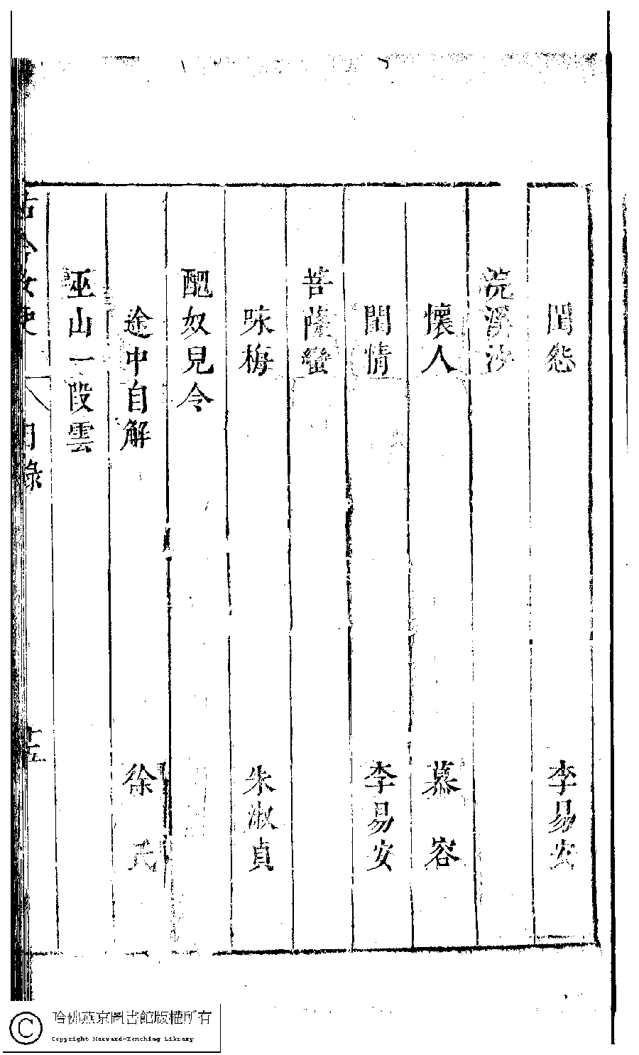 | 原書: 古今女史﹕十二卷﹐詩集﹕八卷﹐附姓氏字里詳節﹕一卷(明趙世杰輯) |