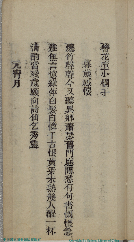 | (PRINT FRIENDLY VERSION) 寶琴閣詩鈔:一卷(清沈文莊撰)。民國間(1912-1949)刻本 ![]() 頁碼 : 詩鈔.3a | 点 击 放 大 | 返回 |