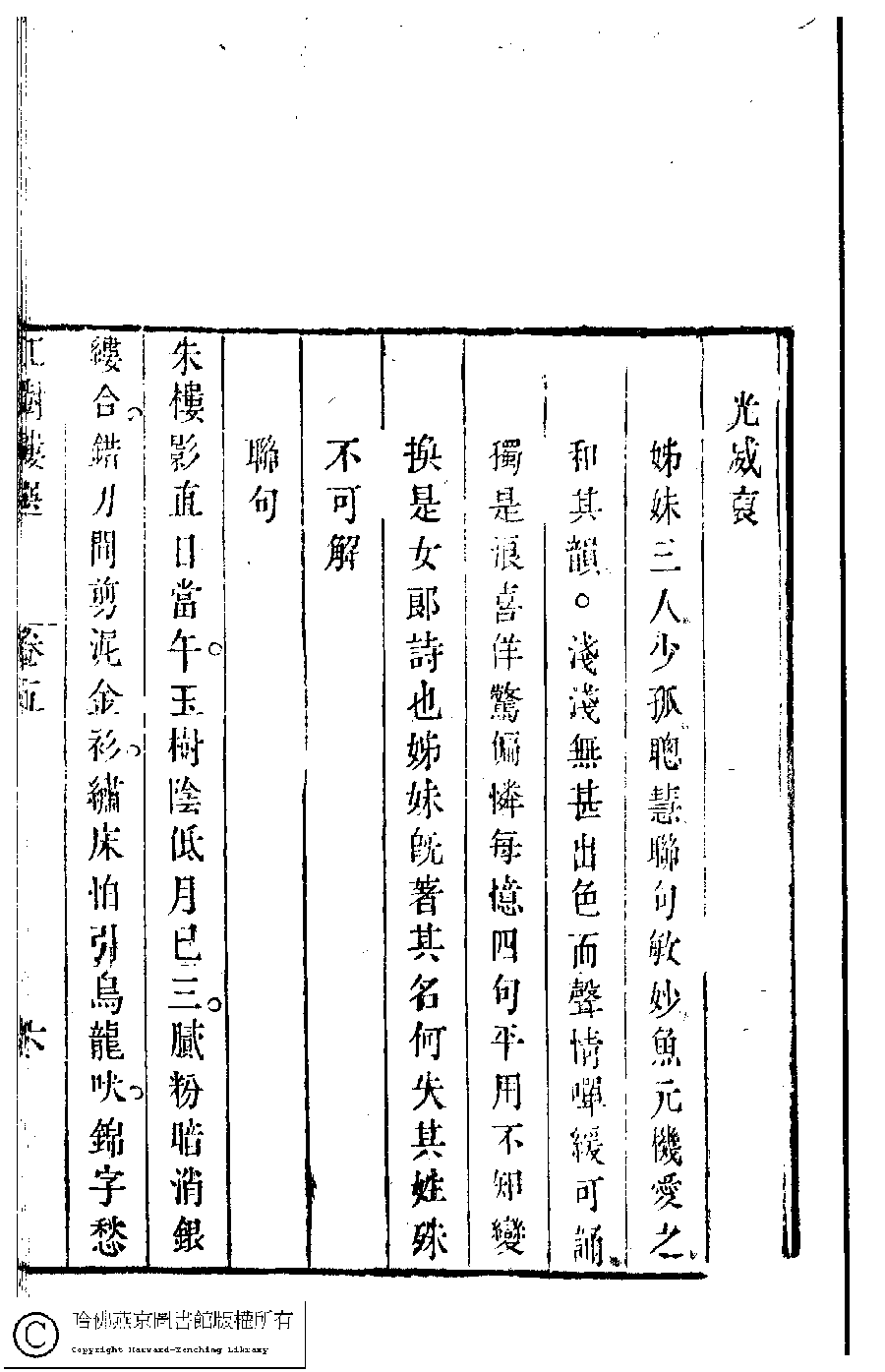 | (PRINT FRIENDLY VERSION) 歷朝名媛詩詞﹕十二卷(清陸昶輯)。清乾隆三十八年(1773)紅樹樓刻本 ![]() 頁碼 : 5.6b | 点 击 放 大 | 歷朝名媛詩詞﹕十二卷(清陸昶輯)。清乾隆三十八年(1773)紅樹樓刻本![]() 頁碼 : 5.6a | 点 击 放 大 | 返回 |