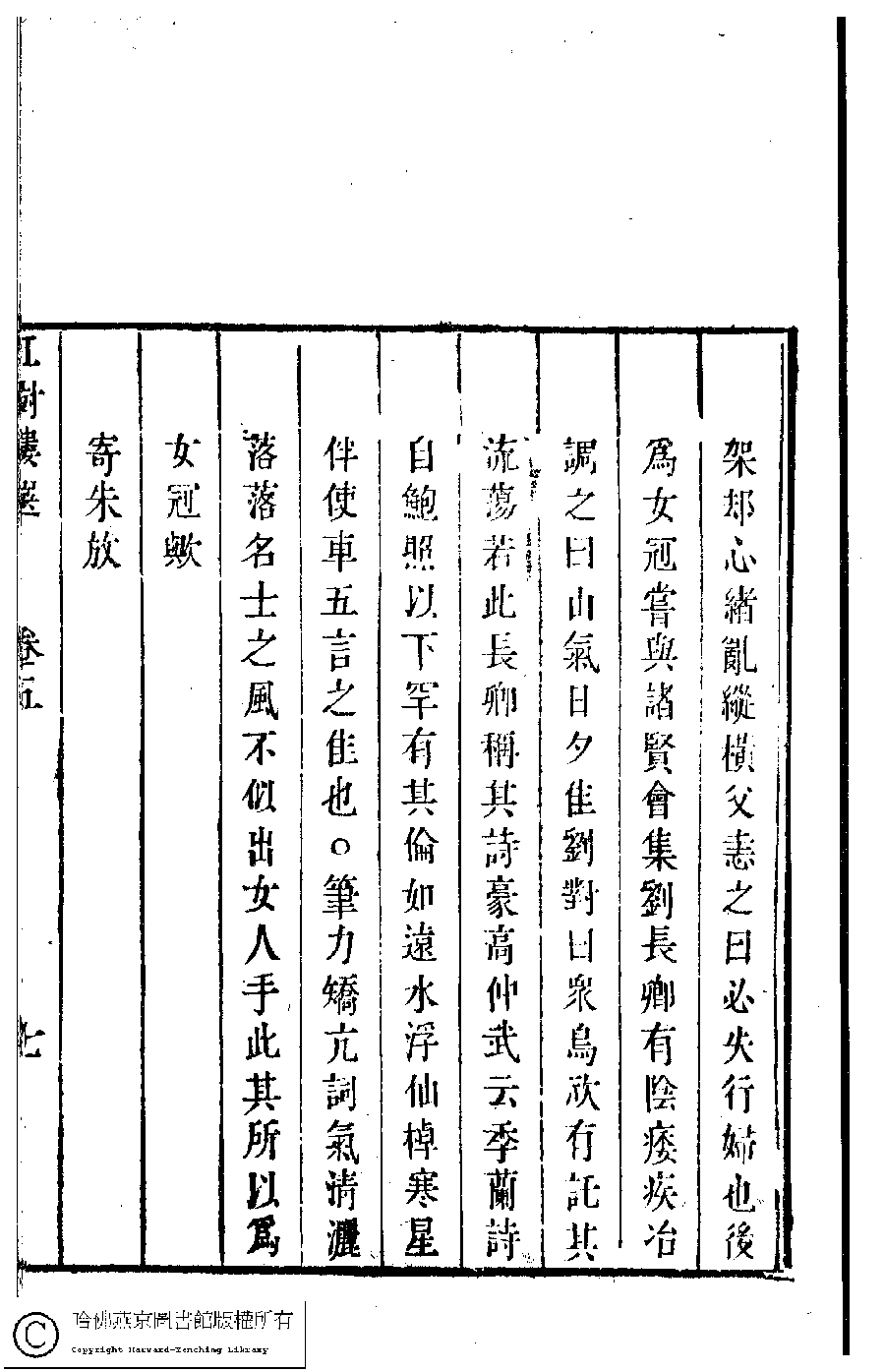 | (PRINT FRIENDLY VERSION) 歷朝名媛詩詞﹕十二卷(清陸昶輯)。清乾隆三十八年(1773)紅樹樓刻本 ![]() 頁碼 : 5.7a | 点 击 放 大 | 歷朝名媛詩詞﹕十二卷(清陸昶輯)。清乾隆三十八年(1773)紅樹樓刻本![]() 頁碼 : 5.6b | 点 击 放 大 | 返回 |