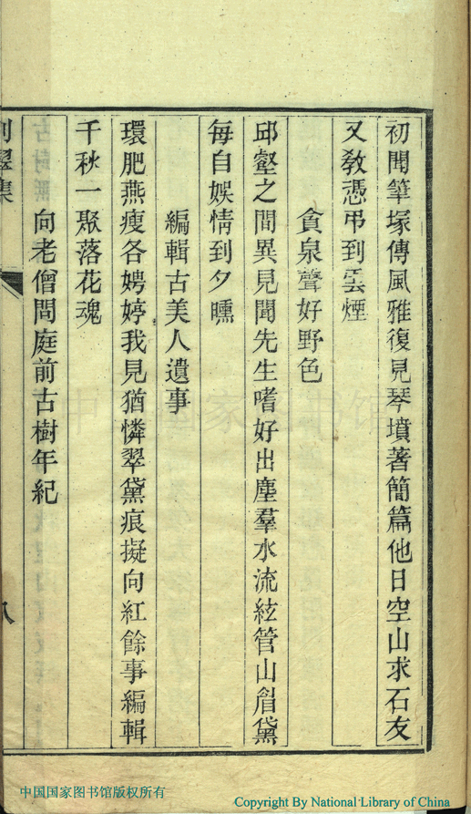| (PRINT FRIENDLY VERSION) 刻翠集:一卷(清章韻清撰)。清光緒己亥仲秋刻本(1899) ![]() 頁碼 : 刻翠集.8b | 点 击 放 大 | 刻翠集:一卷(清章韻清撰)。清光緒己亥仲秋刻本(1899)![]() 頁碼 : 刻翠集.8a | 点 击 放 大 | 返回 |