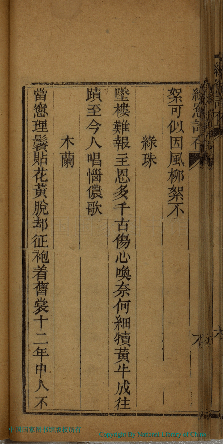 | (PRINT FRIENDLY VERSION) 綠窗詩存:一卷(清陳果撰)。清光緒八年(1882)刻本 ![]() 頁碼 : 詩存.7a | 点 击 放 大 | 綠窗詩存:一卷(清陳果撰)。清光緒八年(1882)刻本![]() 頁碼 : 詩存.6b | 点 击 放 大 | 返回 |