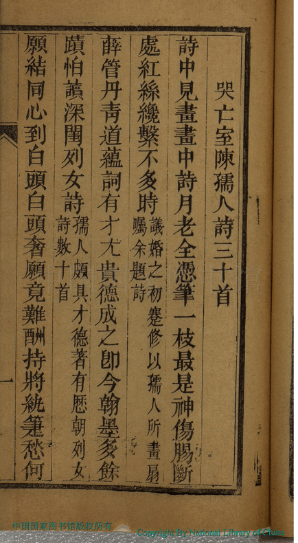 | (PRINT FRIENDLY VERSION) 綠窗詩存:一卷(清陳果撰) ![]() 頁碼 : 哭亡室陳孺人詩三十首.2b | 点 击 放 大 | 綠窗詩存:一卷(清陳果撰)![]() 頁碼 : 哭亡室陳孺人詩三十首.2a | 点 击 放 大 | 綠窗詩存:一卷(清陳果撰)![]() 頁碼 : 哭亡室陳孺人詩三十首.1b | 点 击 放 大 | 綠窗詩存:一卷(清陳果撰)![]() 頁碼 : 哭亡室陳孺人詩三十首.1a | 点 击 放 大 |