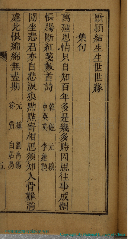 | (PRINT FRIENDLY VERSION) 綠窗詩存:一卷(清陳果撰)。清光緒八年(1882)刻本 ![]() 頁碼 : 哭亡室陳孺人詩三十首.6b | 点 击 放 大 | 綠窗詩存:一卷(清陳果撰)。清光緒八年(1882)刻本![]() 頁碼 : 哭亡室陳孺人詩三十首.6a | 点 击 放 大 | 綠窗詩存:一卷(清陳果撰)。清光緒八年(1882)刻本![]() 頁碼 : 哭亡室陳孺人詩三十首.5b | 点 击 放 大 | 綠窗詩存:一卷(清陳果撰)。清光緒八年(1882)刻本![]() 頁碼 : 哭亡室陳孺人詩三十首.5a | 点 击 放 大 | 返回 |
