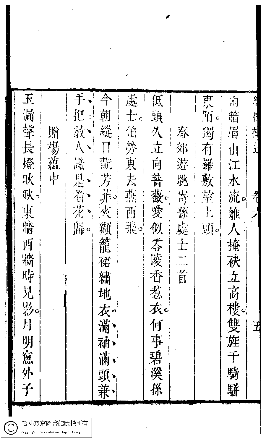 | (PRINT FRIENDLY VERSION) 歷朝名媛詩詞﹕十二卷(清陸昶輯)。清乾隆三十八年(1773)紅樹樓刻本 ![]() 頁碼 : 6.5b | 点 击 放 大 | 歷朝名媛詩詞﹕十二卷(清陸昶輯)。清乾隆三十八年(1773)紅樹樓刻本![]() 頁碼 : 6.5a | 点 击 放 大 | 返回 |