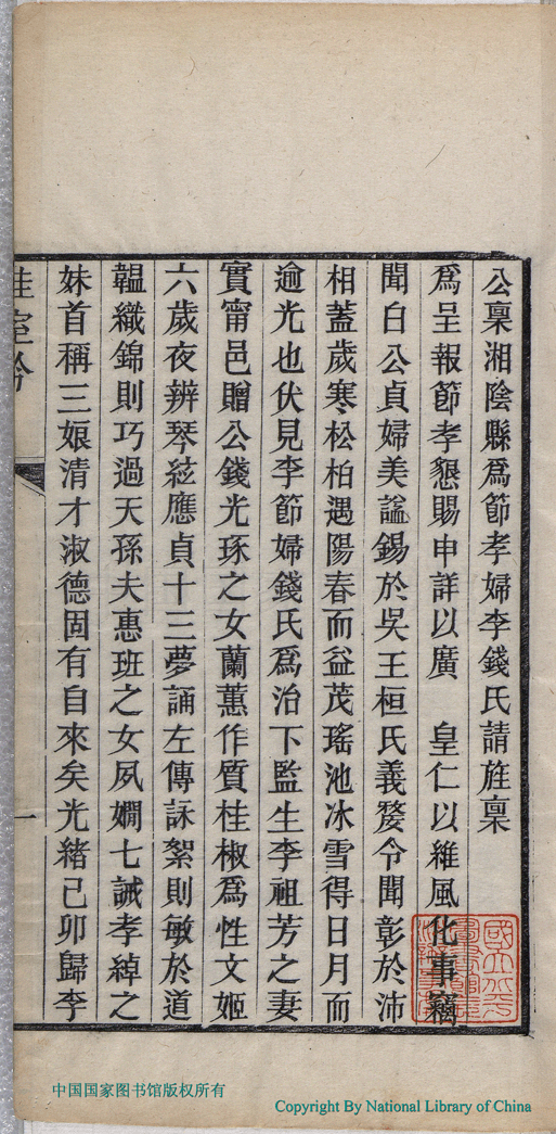 詩詞 [公稟湘陰縣爲節孝婦李錢氏請旌稟]