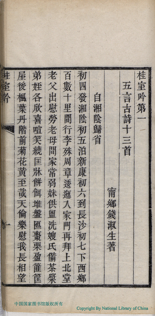 桂室吟:七卷(清錢淑生撰)。清光緒二十七年(1901)江陵刻本