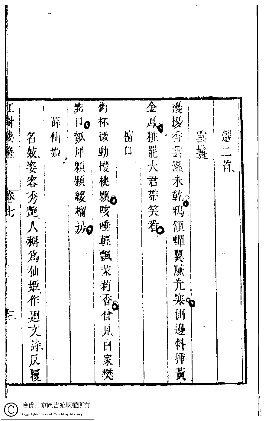 | (PRINT FRIENDLY VERSION) 歷朝名媛詩詞﹕十二卷(清陸昶輯)。清乾隆三十八年(1773)紅樹樓刻本 ![]() 頁碼 : 7.3a | 点 击 放 大 | 歷朝名媛詩詞﹕十二卷(清陸昶輯)。清乾隆三十八年(1773)紅樹樓刻本![]() 頁碼 : 7.2b | 点 击 放 大 | 返回 |
