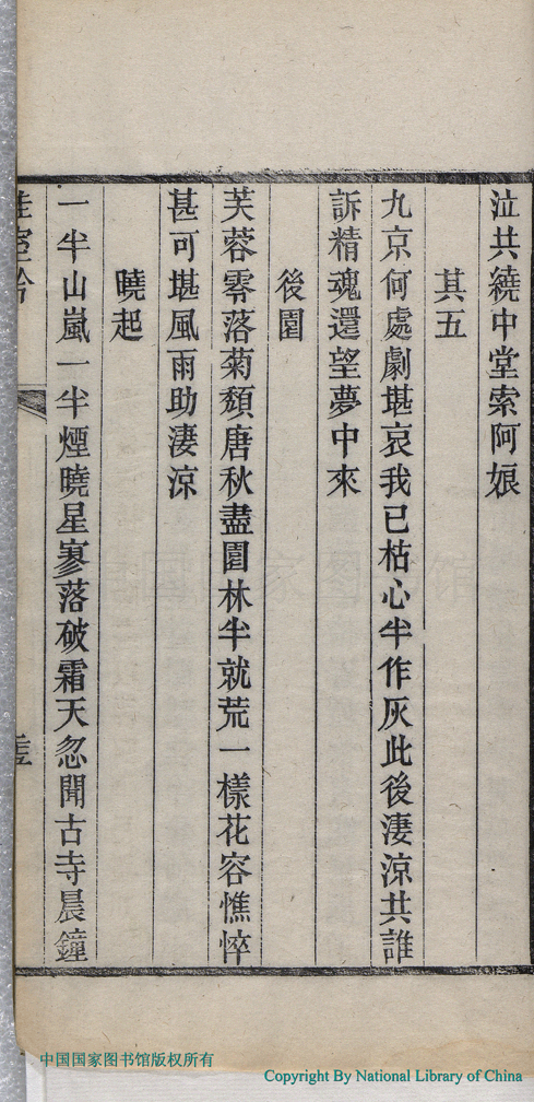| (PRINT FRIENDLY VERSION) 桂室吟:七卷(清錢淑生撰)。清光緒二十七年(1901)江陵刻本 ![]() 頁碼 : 7.7b | 点 击 放 大 | 桂室吟:七卷(清錢淑生撰)。清光緒二十七年(1901)江陵刻本![]() 頁碼 : 7.7a | 点 击 放 大 | 返回 |