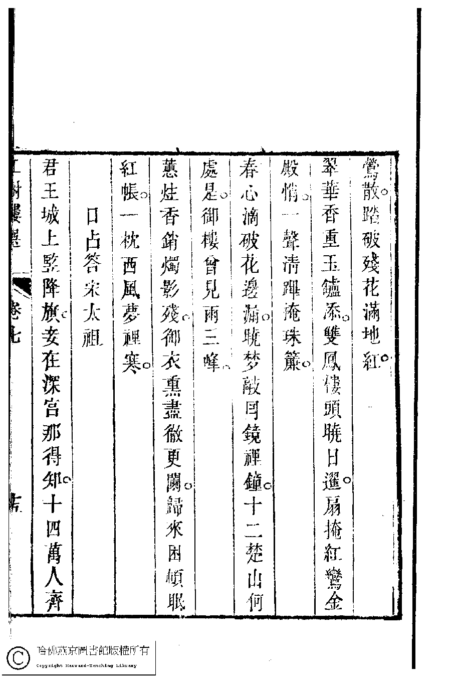| (PRINT FRIENDLY VERSION) 歷朝名媛詩詞﹕十二卷(清陸昶輯)。清乾隆三十八年(1773)紅樹樓刻本 ![]() 頁碼 : 7.15b | 点 击 放 大 | 歷朝名媛詩詞﹕十二卷(清陸昶輯)。清乾隆三十八年(1773)紅樹樓刻本![]() 頁碼 : 7.15a | 点 击 放 大 | 返回 |