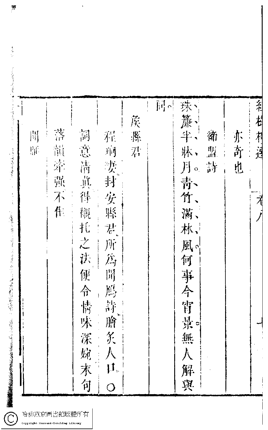 | (PRINT FRIENDLY VERSION) 歷朝名媛詩詞﹕十二卷(清陸昶輯)。清乾隆三十八年(1773)紅樹樓刻本 ![]() 頁碼 : 8.7b | 点 击 放 大 | 歷朝名媛詩詞﹕十二卷(清陸昶輯)。清乾隆三十八年(1773)紅樹樓刻本![]() 頁碼 : 8.7a | 点 击 放 大 | 返回 |