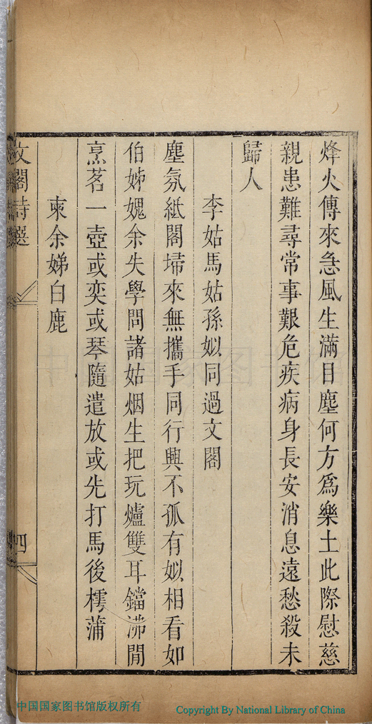| (PRINT FRIENDLY VERSION) 文閣詩選:一卷(清陳舜英撰)。清(1644-1911)刻本 ![]() 頁碼 : 詩選.4b | 点 击 放 大 | 文閣詩選:一卷(清陳舜英撰)。清(1644-1911)刻本![]() 頁碼 : 詩選.4a | 点 击 放 大 | 返回 |