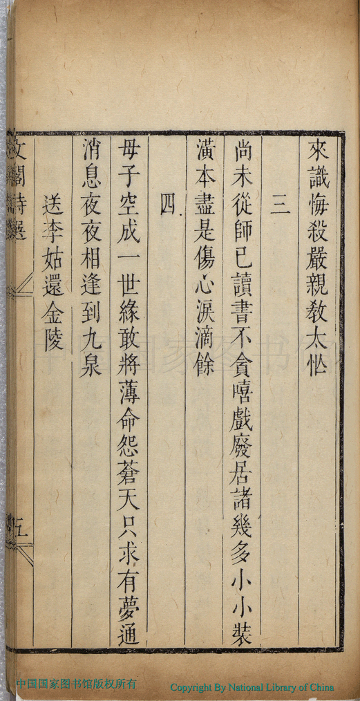 | (PRINT FRIENDLY VERSION) 文閣詩選:一卷(清陳舜英撰)。清(1644-1911)刻本 ![]() 頁碼 : 詩選.5a | 点 击 放 大 | 文閣詩選:一卷(清陳舜英撰)。清(1644-1911)刻本![]() 頁碼 : 詩選.4b | 点 击 放 大 | 返回 |