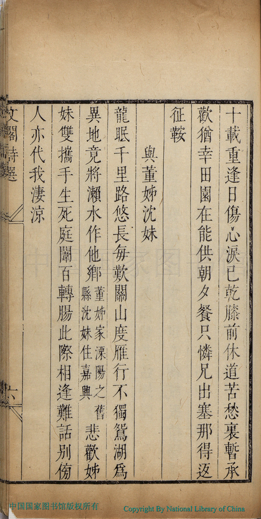 | (PRINT FRIENDLY VERSION) 文閣詩選:一卷(清陳舜英撰)。清(1644-1911)刻本 ![]() 頁碼 : 詩選.6a | 点 击 放 大 | 返回 |