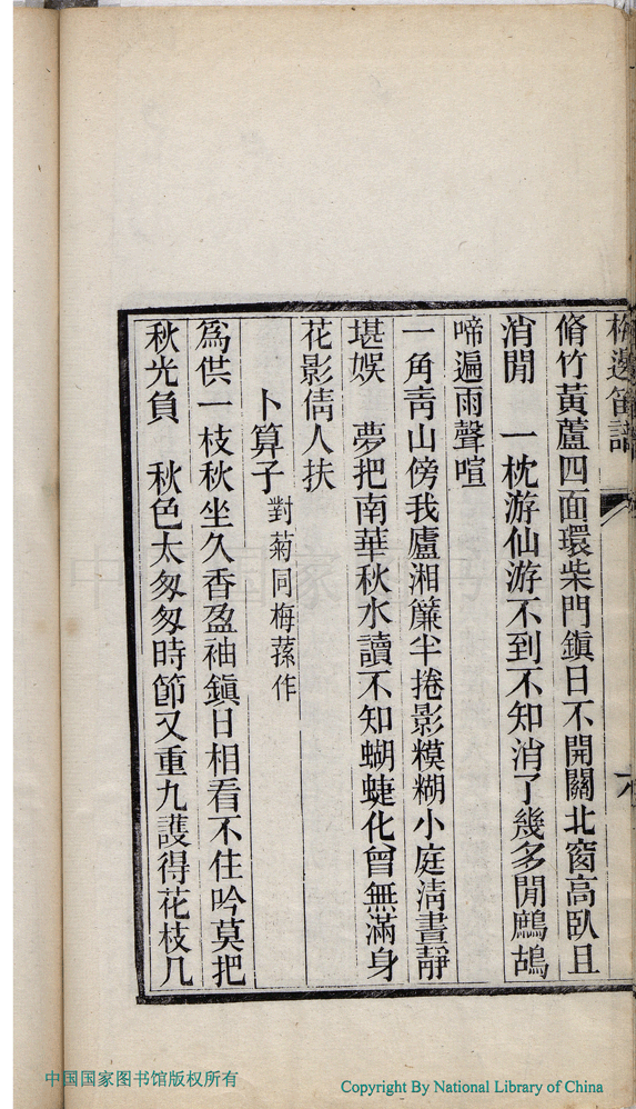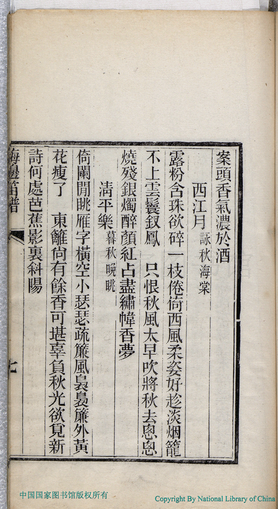 | (PRINT FRIENDLY VERSION) 梅邊笛譜:一卷(清蔣左賢撰)。清光緒十五年(1889)刻本 ![]() 頁碼 : 梅邊笛譜.7a | 点 击 放 大 | 梅邊笛譜:一卷(清蔣左賢撰)。清光緒十五年(1889)刻本![]() 頁碼 : 梅邊笛譜.6b | 点 击 放 大 | 返回 |