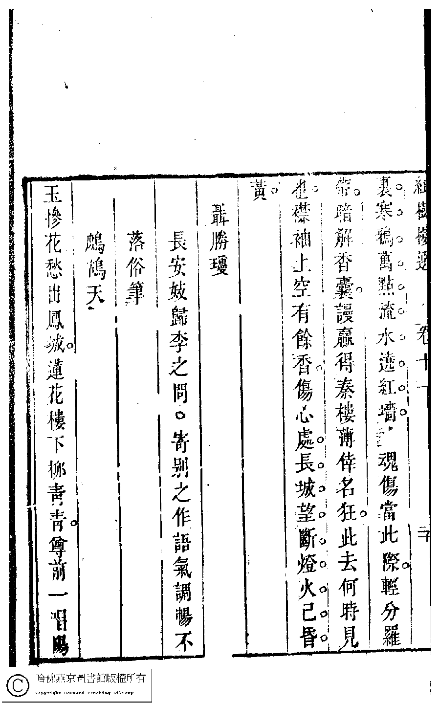 | (PRINT FRIENDLY VERSION) 歷朝名媛詩詞﹕十二卷(清陸昶輯)。清乾隆三十八年(1773)紅樹樓刻本 ![]() 頁碼 : 11.21a | 点 击 放 大 | 歷朝名媛詩詞﹕十二卷(清陸昶輯)。清乾隆三十八年(1773)紅樹樓刻本![]() 頁碼 : 11.20b | 点 击 放 大 | 返回 |