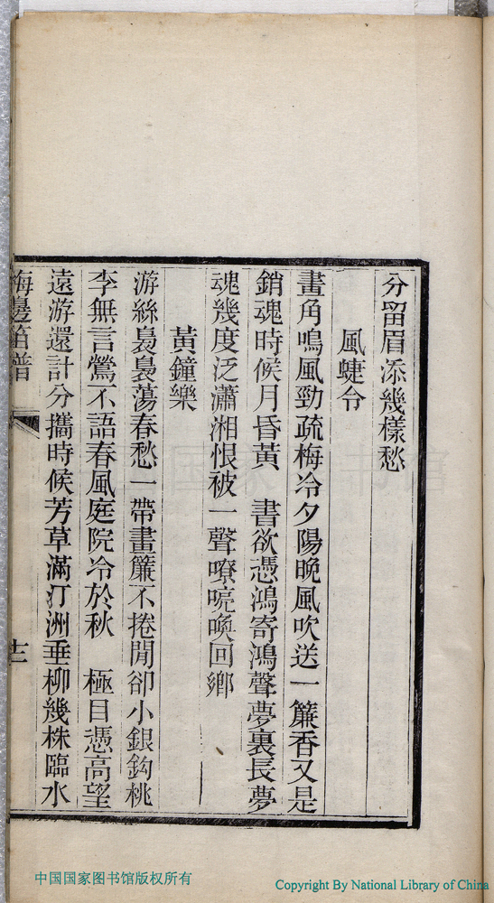 | (PRINT FRIENDLY VERSION) 梅邊笛譜:一卷(清蔣左賢撰)。清光緒十五年(1889)刻本 ![]() 頁碼 : 梅邊笛譜.12a | 点 击 放 大 | 梅邊笛譜:一卷(清蔣左賢撰)。清光緒十五年(1889)刻本![]() 頁碼 : 梅邊笛譜.11b | 点 击 放 大 | 返回 |