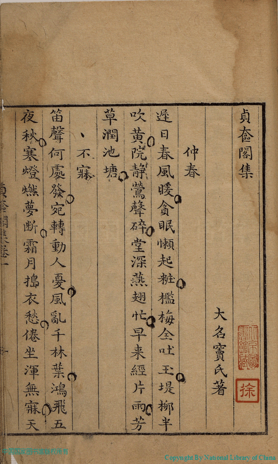 | 原書: 貞奩閣集:二卷(清竇氏撰) |