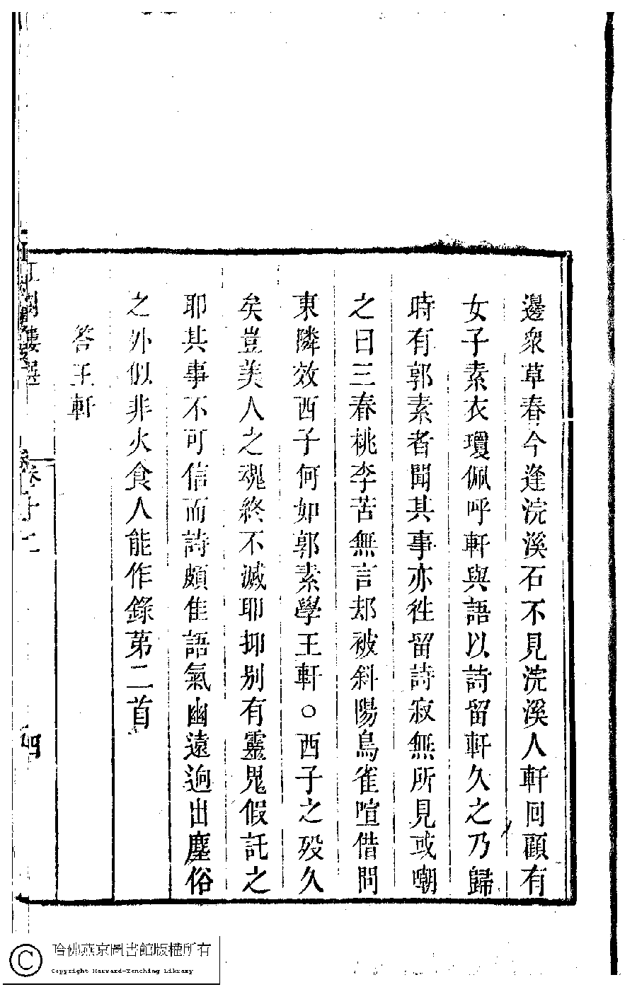 | (PRINT FRIENDLY VERSION) 歷朝名媛詩詞﹕十二卷(清陸昶輯)。清乾隆三十八年(1773)紅樹樓刻本 ![]() 頁碼 : 12.4b | 点 击 放 大 | 歷朝名媛詩詞﹕十二卷(清陸昶輯)。清乾隆三十八年(1773)紅樹樓刻本![]() 頁碼 : 12.4a | 点 击 放 大 | 返回 |