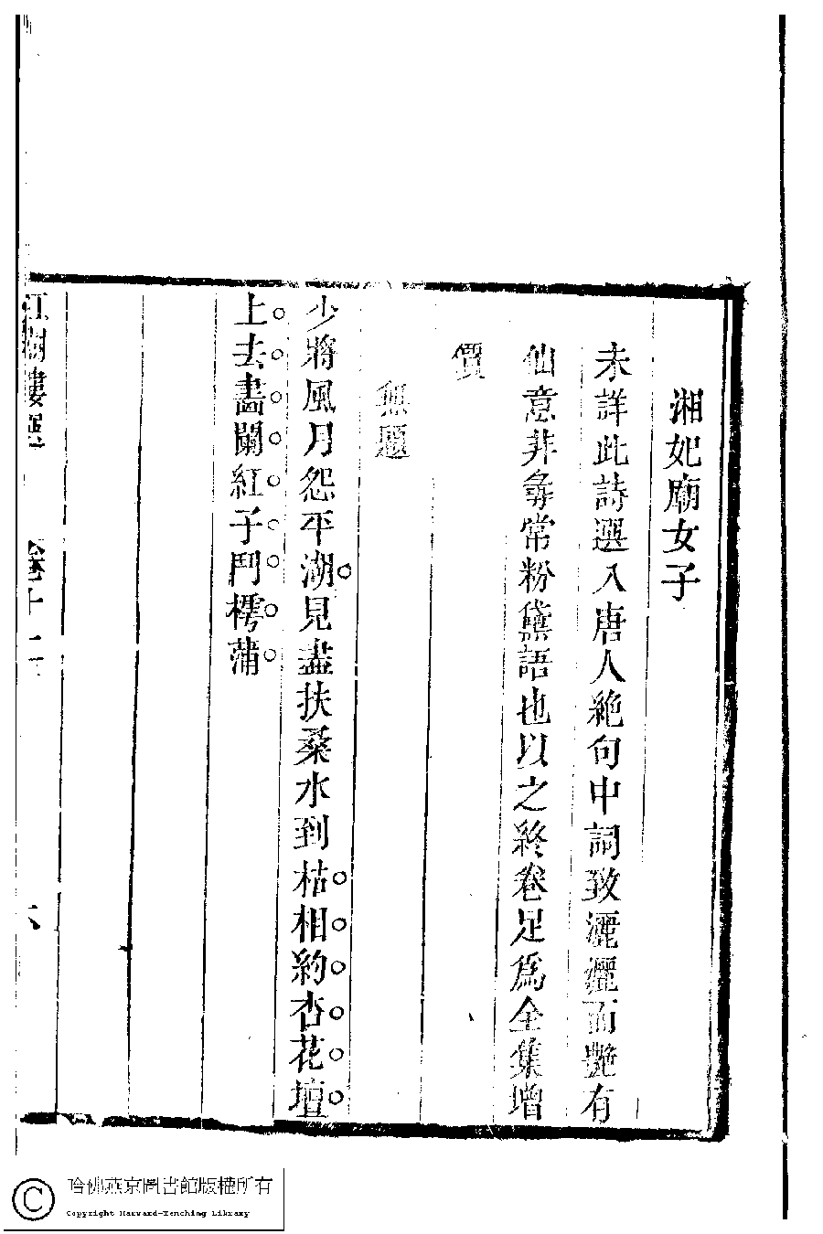| (PRINT FRIENDLY VERSION) 歷朝名媛詩詞﹕十二卷(清陸昶輯)。清乾隆三十八年(1773)紅樹樓刻本 ![]() 頁碼 : 12.6b | 点 击 放 大 | 歷朝名媛詩詞﹕十二卷(清陸昶輯)。清乾隆三十八年(1773)紅樹樓刻本![]() 頁碼 : 12.6a | 点 击 放 大 | 返回 |