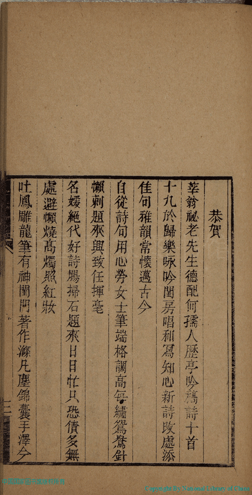詩詞 [恭賀莘翁祕老先生德配何孺人歷亭吟稿詩十首]