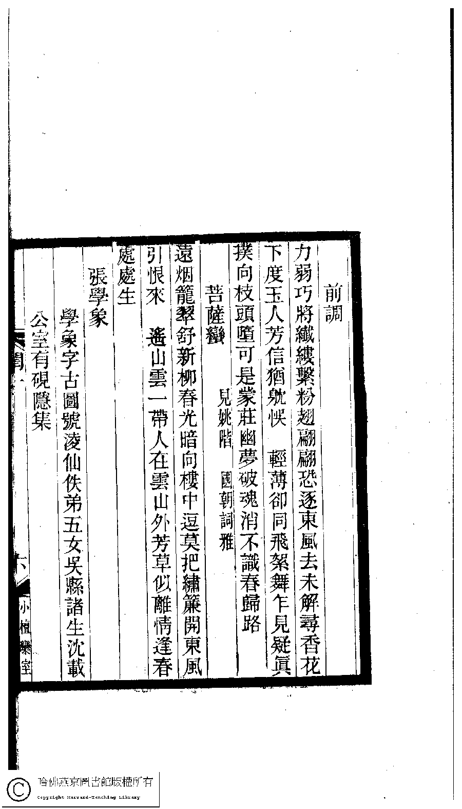 | (PRINT FRIENDLY VERSION) 閨秀詞鈔﹕十六卷(清徐乃昌輯)。清宣統元年(1909)小檀欒室刻本。 ![]() 頁碼 : 1.6a | 点 击 放 大 | 返回 |