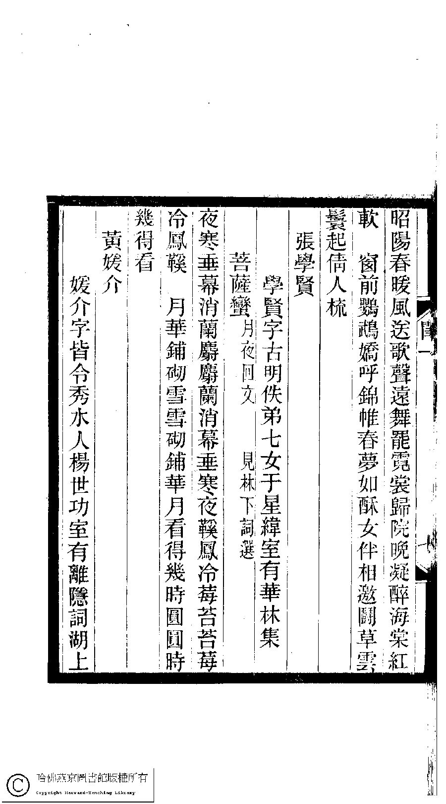 | (PRINT FRIENDLY VERSION) 閨秀詞鈔﹕十六卷(清徐乃昌輯)。清宣統元年(1909)小檀欒室刻本。 ![]() 頁碼 : 1.7b | 点 击 放 大 | 閨秀詞鈔﹕十六卷(清徐乃昌輯)。清宣統元年(1909)小檀欒室刻本。![]() 頁碼 : 1.7a | 点 击 放 大 | 返回 |