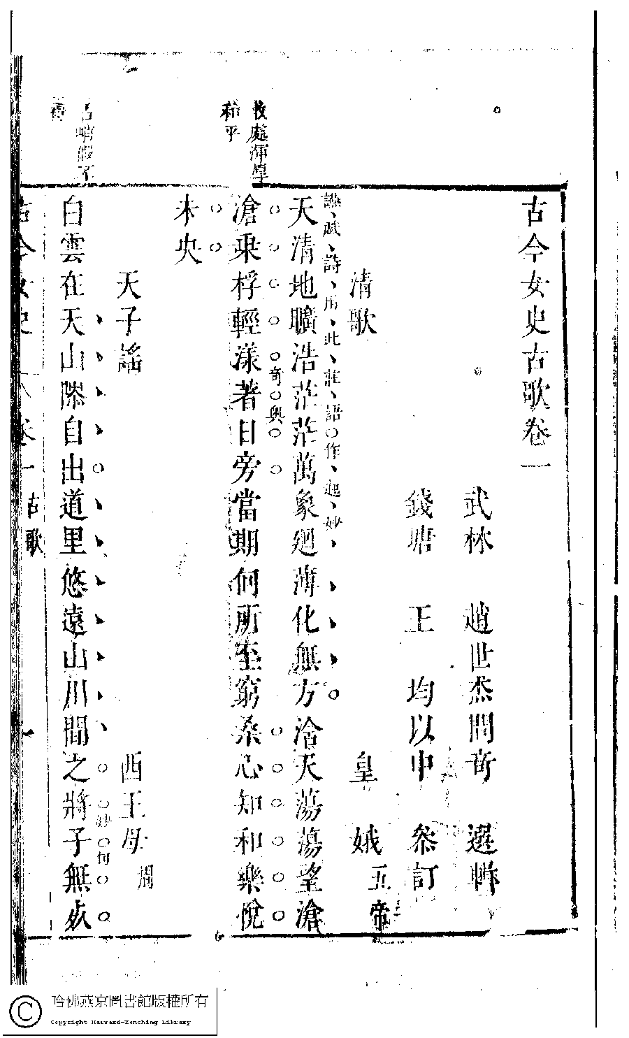 | 原書: 古今女史﹕十二卷﹐詩集﹕八卷﹐附姓氏字里詳節﹕一卷(明趙世杰輯) |