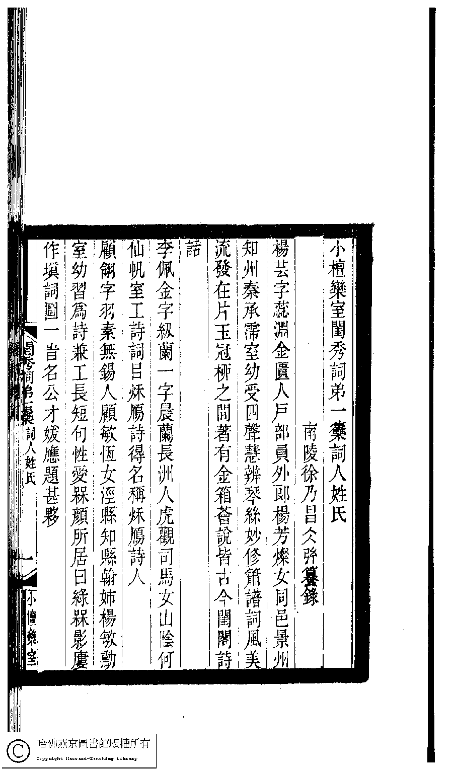 | 原書: 小檀欒室彙刻閨秀詞﹕十集一百種一百卷(清徐乃昌輯) |