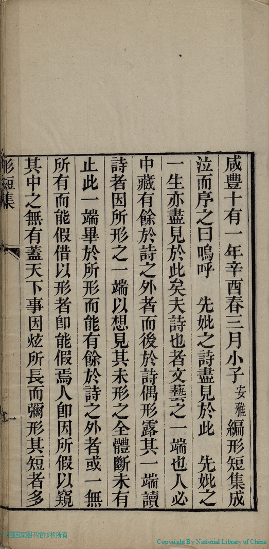 | 原書: 形短集:一卷(清高芳雲撰) |