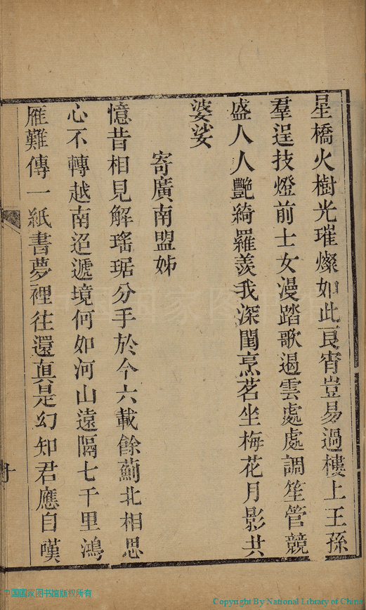 | (PRINT FRIENDLY VERSION) 蘭軒未訂稿: 初集一卷,二集一卷(清竇蘭軒撰)。清道光辛卯 (1831)平濼王氏刻本 ![]() 頁碼 : 初集.10a | 点 击 放 大 | 蘭軒未訂稿: 初集一卷,二集一卷(清竇蘭軒撰)。清道光辛卯 (1831)平濼王氏刻本![]() 頁碼 : 初集.9b | 点 击 放 大 | 返回 |